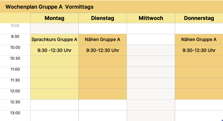Gruppe A trifft sich am Vormittag von 9:30-12:30 Uhr.